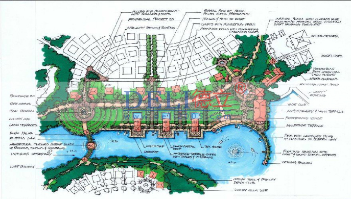 將碼頭各個(gè)組成部分看成一個(gè)建筑組群來(lái)對(duì)待,從整體上進(jìn)行把握,可以結(jié)合游人等候設(shè)置一內(nèi)庭空間,在其中布置一些能夠體現(xiàn)建筑性格和水有關(guān)的雕塑、壁畫、汀步、置石、隔斷等園林建筑小品,應(yīng)盡可能和水有關(guān)系以便進(jìn)行點(diǎn)題,同時(shí)應(yīng)該注意,從碼頭選址開(kāi)始,就應(yīng)注意借景、對(duì)景、觀景的考慮,使碼頭即可觀景又可成景,以便和整體環(huán)境相協(xié)調(diào)。