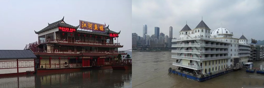 躉船(dǔn chuán),無動力裝置的矩形平底船,通常固定在岸邊,最初僅作為浮碼頭使用,用于裝卸貨物或供行人上下,后隨著時代的發(fā)展,也被用作商業(yè)、娛樂、餐飲及水上學(xué)校等使用。20世紀(jì)80年代初,珠江水域一些躉船被裝修成“海鮮舫”。其中在廣州大沙頭岸邊,出現(xiàn)了“龍門海鮮舫”,它雕梁畫棟、古香古色,并且是由港商經(jīng)營,為改革開放后廣州的一道靚麗風(fēng)景。