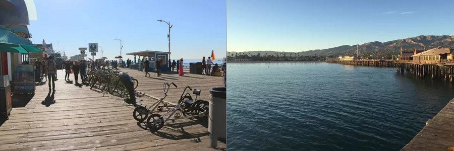 美國洛杉磯圣塔莫尼卡(Santa Monica)海灘上最顯眼的建筑是最早建于1908年的凸出海灘線的突堤碼頭。這個碼頭可以說是圣塔莫尼卡的象征,有很多美國的電影、電視劇都曾在這里進行過拍攝。電影《鐵達尼號》Jack對Rose說要帶Rose來圣塔莫尼卡和坐摩天輪;《阿甘正傳》電影中,阿甘跑步到的西岸就是這里,碼頭上有家阿甘的Bubba Gump Shrimp餐廳。在突堤碼頭上有一個游樂場和一些餐廳,還可以品嘗到新鮮的海鮮。每到節(jié)假日,這里還會舉行小型演唱會和舞會,別有一番異國風(fēng)情。碼頭高高地架設(shè)在海面之上,不遠處還有一個充滿大人和兒童歡笑聲的太平洋游樂園,里面有摩天輪,云霄飛車,旋轉(zhuǎn)木馬等。