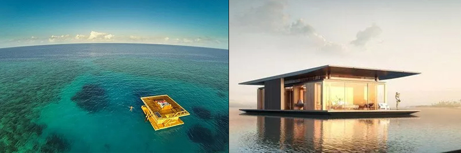 漂浮屋的設(shè)計概念受自然、開放性和奢華而又簡約的生活方式啟發(fā),以最小的干預(yù)來實現(xiàn)與周圍環(huán)境的無縫連接。房子建在一個浮動平臺上,可以很容易地從一個地方到另一個地方,給位移提供了很大的靈活性。房子內(nèi)部結(jié)構(gòu)包括大小、空間、材料和表面處理都可以根據(jù)客戶的需求進行定制。理論上漂浮屋可以拖到任意一個風(fēng)景優(yōu)美的地方停泊。